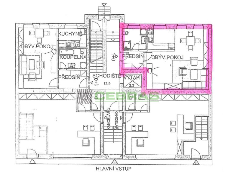 Byt 1 + kk s výtahem a zahradou ve zděném domě v centru Českých