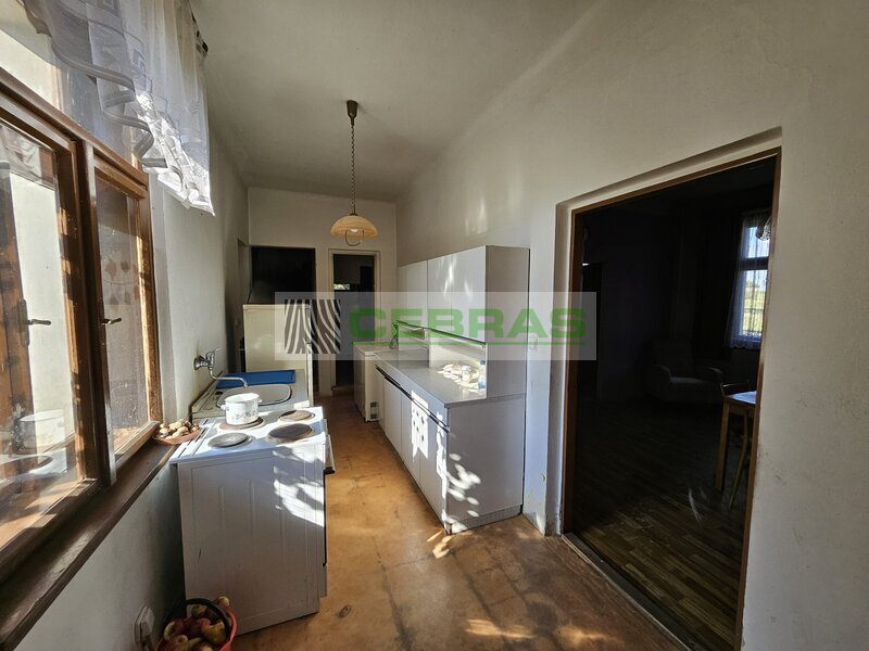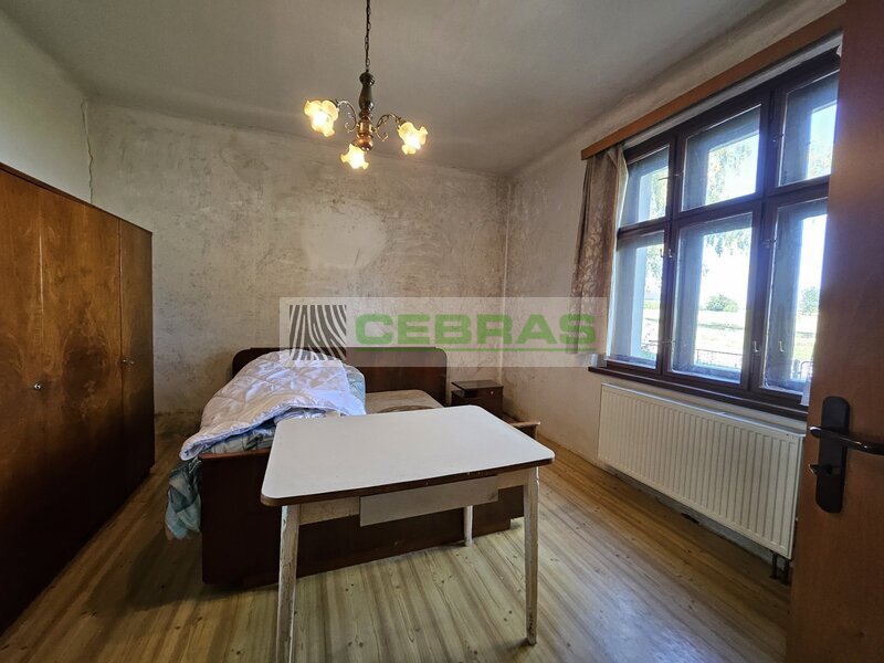 Zděný, přízemní, samostatně stojící dům do "L" s obytným podkrovím, navazující technickohospodářskou budovou (sklad paliv, dílna), průjezdem do dvora ze dvou stran, předzahrádkou a zahradou. Dispozice: vstupní chodba s kuchyní, obývací pokoj, ložnice, spíž, toaleta, koupelna s vanou, schodiště do podkroví, podkrovní ložnice s možností dalšího rozšíření. Napojená hospodářská budova sloužící jako sklad a dílna, s vstupy ze dvora a zahrady. Zatravněný dvůr s vraty na vedlejší komunikaci, v rohu malá vedlejší stavba. Elektro, vodovod, kanalizace, lokální vytápění s rozvodem do radiátorů. Po celkové rekonstrukci ( 2000) +střešní krytina, okna, půdní vestavba. Plocha pozemku 820 m2, zastavěná plocha 120 m2.